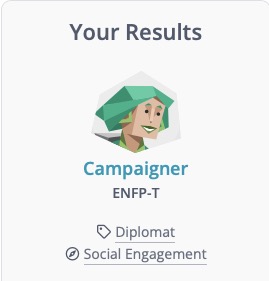 "Campaigners (ENFPs) are true free spirits – outgoing, openhearted, and open-minded. With their lively, upbeat approach to life, they stand out in any crowd. But even though they can be the life of the party, Campaigners don’t just care about having a good time. These personality types run deep – as does their longing for meaningful, emotional connections with other people."